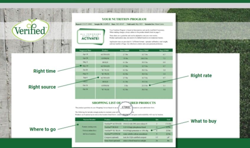 Verified™ Soil Health Test Kits unlock “Your Nutrition Program”, a personalized, eco-friendly fertilizer schedule tailored to your lawn’s unique needs.